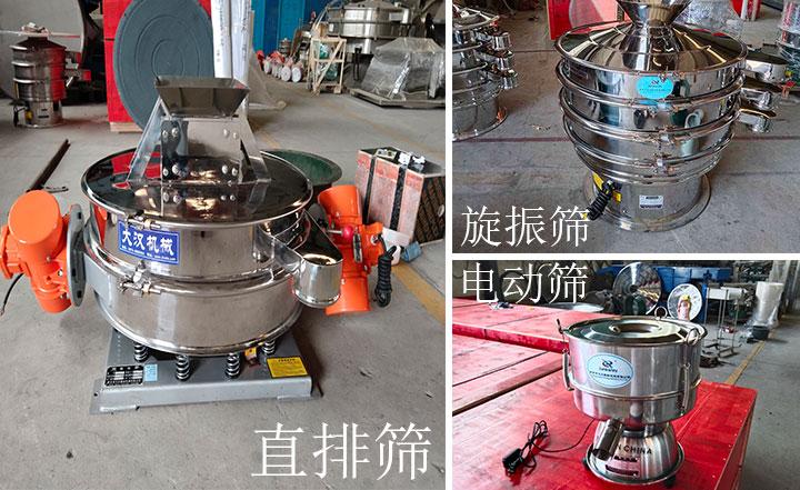 筛粉机设备生产厂家生产了许多设备来满足不同分类物料的筛分需求,比如直排筛、旋振筛、电动筛、高频筛、卧式气流筛、试验筛和超声波筛粉机等。