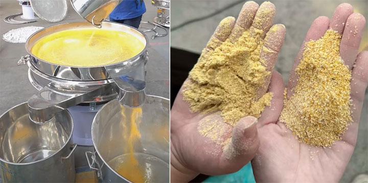 直线振动筛粉机可用于筛分20-100目的较粗的玉米粉,适合玉米糁、碎玉米颗粒或粗粉的粗略筛分和除杂,常用于大规格的生产线使用,时产20吨。